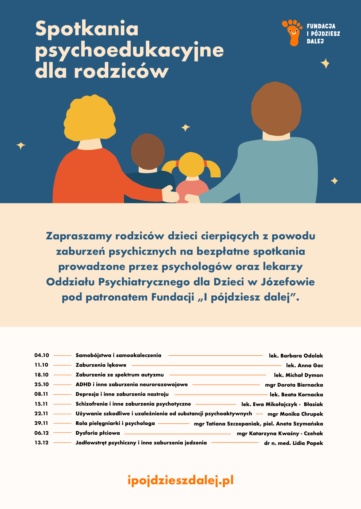 25 i 27 października 2022 - lek. Bożena Hrycan, psychiatra | zajęcia dla rodziców - „Zwiększanie świadomości na temat przyczyn zaburzeń psychicznych oraz ich występowania jak i ich leczenia według najnowszych standardów medycyny współczesnej z uwzględnieniem profilaktyki zaburzeń psychicznych.”